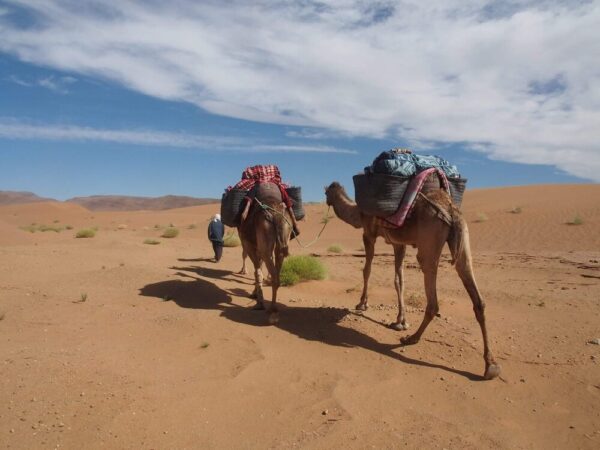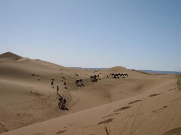 The 6 Days Camel Trek Zagora is an immersive desert adventure that takes you deep into the Sahara Desert. This unique trekking experience lets you walk or ride alongside a camel caravan, cross golden dunes, dried riverbeds, and rocky hammada, and discover the timeless rhythm of nomadic life. Each evening, enjoy Sahrawi hospitality, traditional meals, and magical nights under one of the clearest skies in the world.